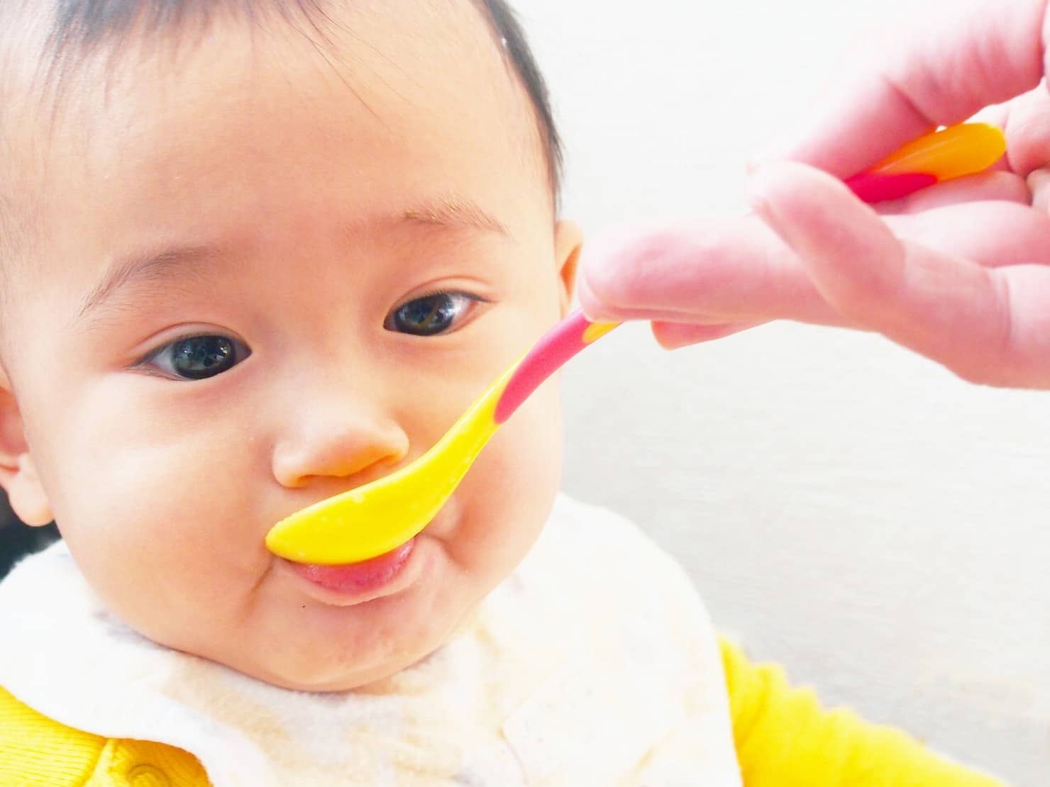 最初はドロドロになるまですり潰した離乳食からスタートし、徐々に固形の離乳食を増やし、赤ちゃんが1歳くらいになれば大人と同じ食事を食べられるようになります。離乳食についての詳しい進め方は下記の記事で紹介しているので、そちらを参照してください。